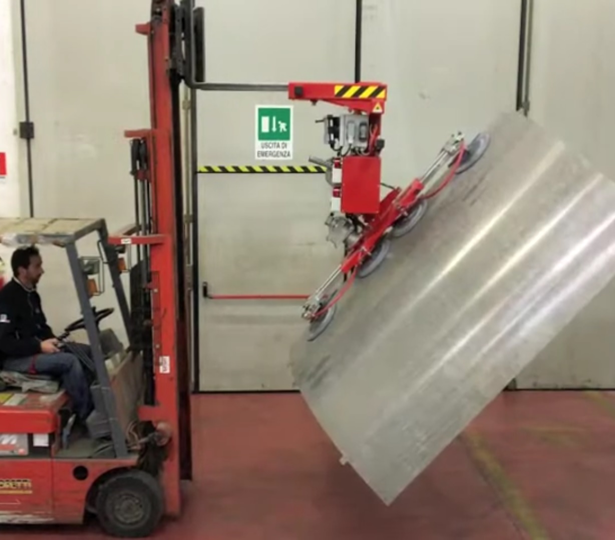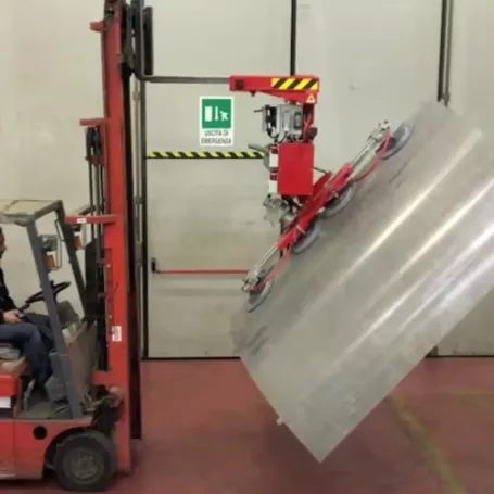 Palonnier à ventouses pour chariot élévateur basculement 0-90° / rotation 180°